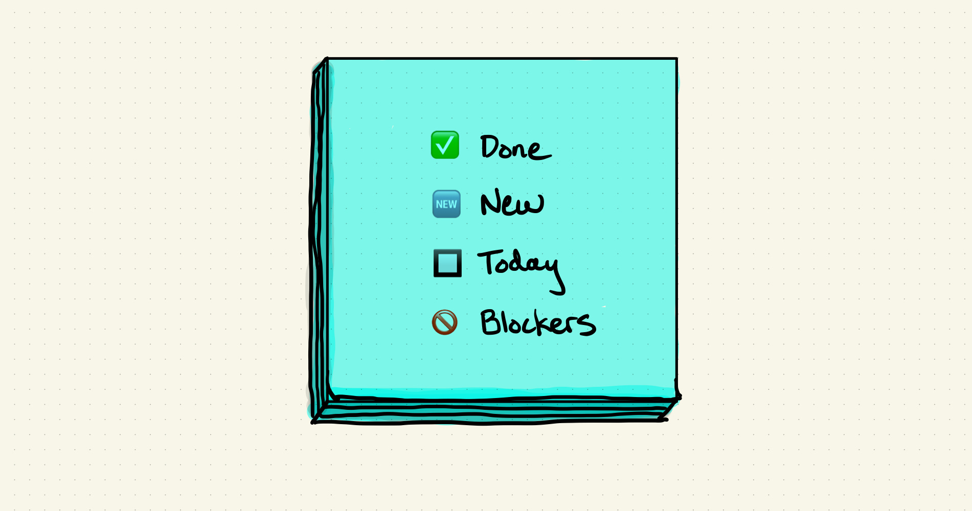Regardless of how your stand-ups are structured2, what your boss and team need to know most is: what did you get done?